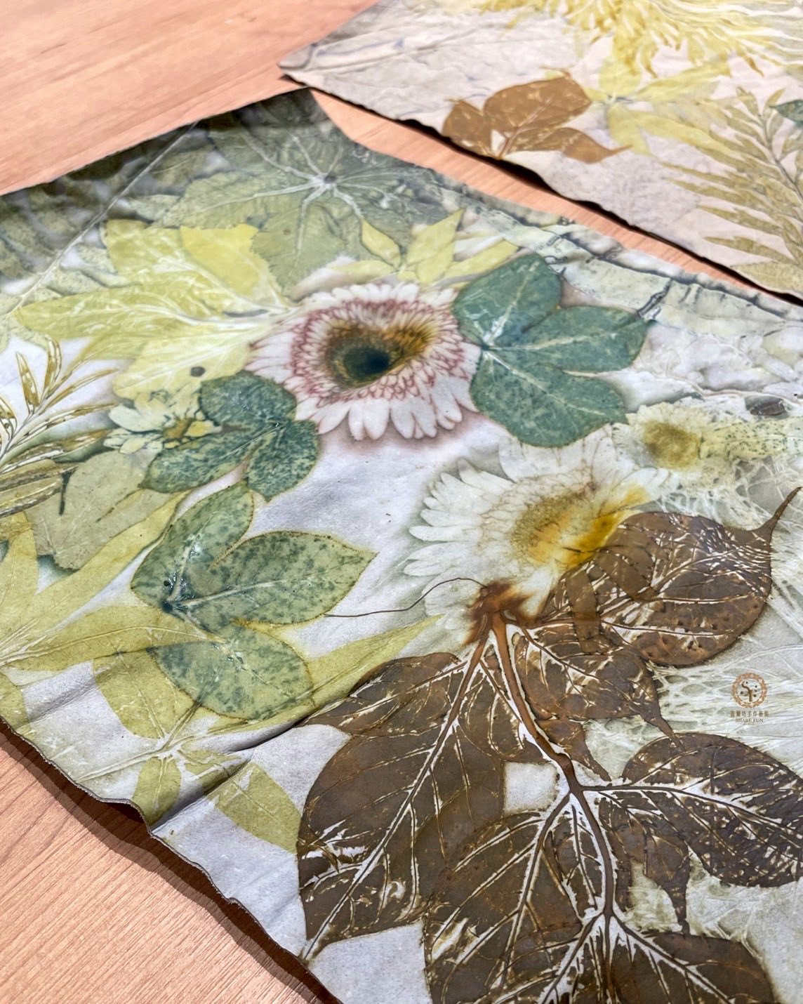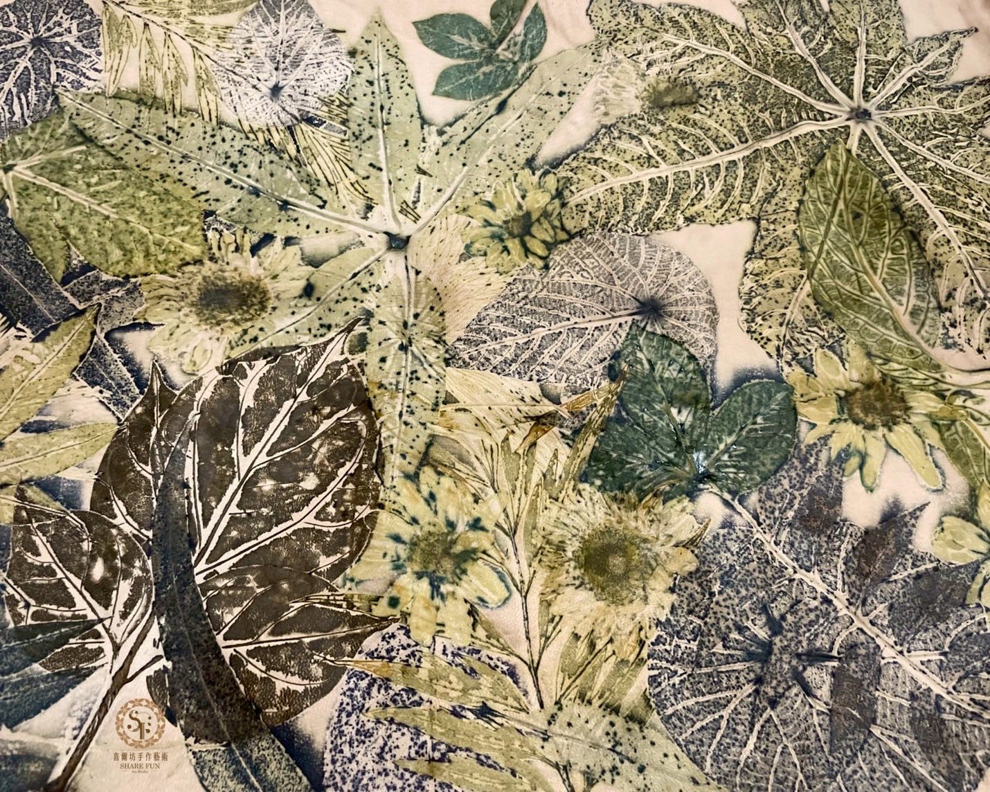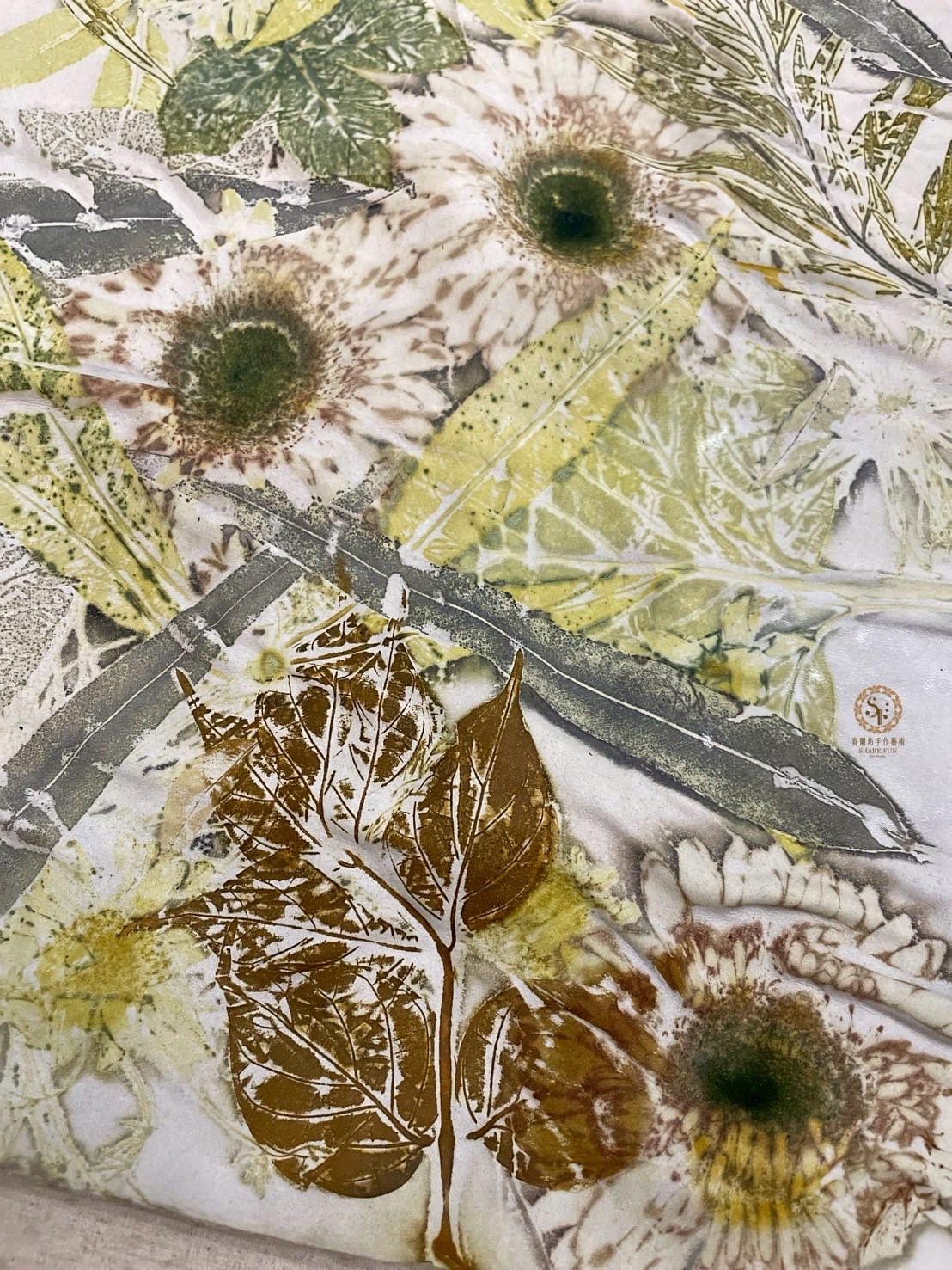 【移印染技法】結合植物染與不同技法的媒彩創作,將美感落實於日常生活,悄然地蘊藏在美術工藝與生活工藝的創作之中,也開啟了人與大自然共同創作的可能性