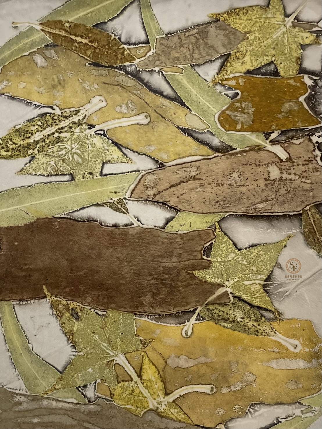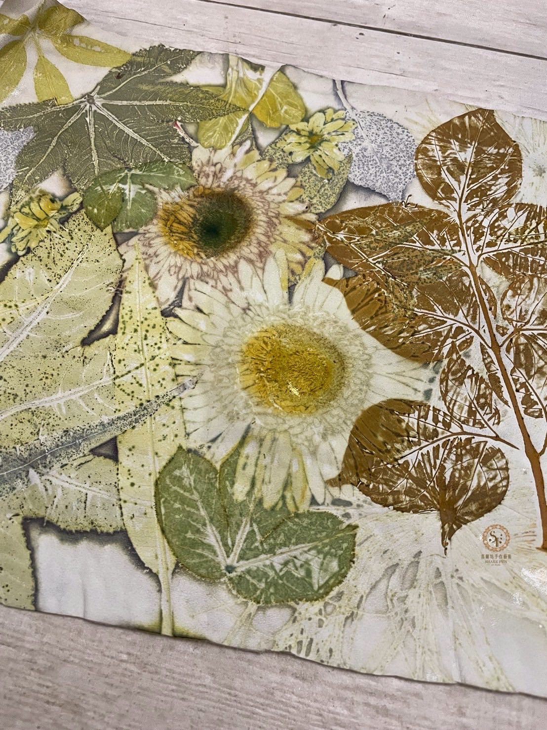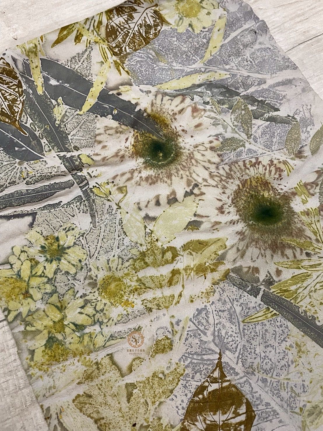 【移印染技法】結合植物染與不同技法的媒彩創作,將美感落實於日常生活,悄然地蘊藏在美術工藝與生活工藝的創作之中,也開啟了人與大自然共同創作的可能性