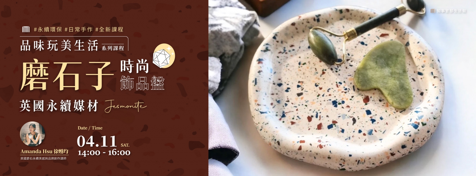 課程主題【品味玩美生活】英國永續媒材 JESMONITE▸ 打造時尚磨石子飾品盤- 2026/04/11(六) 14:00-16:00