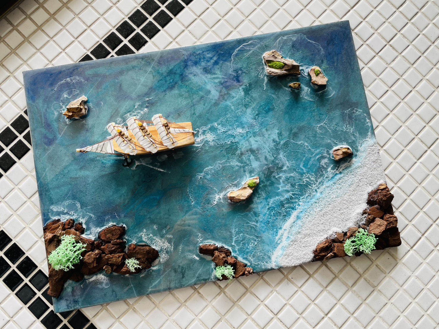 Get🔹無框畫 🔹樹脂與異材質創作 🔹15cm船隻