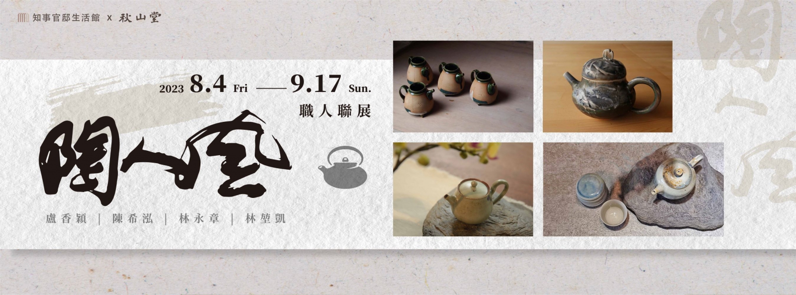 陶人風是為國立台灣工藝研究發展中心陶瓷工坊於2013年協助成立之陶瓷工藝團體,日常維運由11位陶作家合作,展示陶藝與生活美學間的結合,分享創作過程與媒材的對話。為傳承世代交融的樂陶精神,致力學習研究並構思創作。與場館分享生活美學、藝術生活和空間的核心價值不謀而合。四位中生代傑出陶職人共同聯展約60餘件作品。並於8月12日舉辦品茶會,帶來共享共感的美好時光。